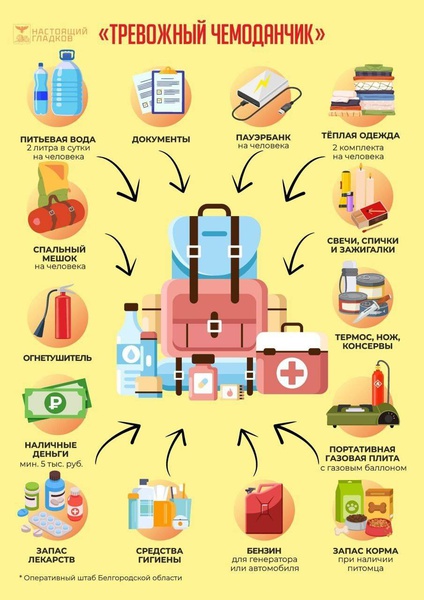 Тревожный чемоданчик — это набор вещей первой необходимости, который всегда должен быть под рукой для безопасной эвакуации из зоны чрезвычайной ситуации (ЧС) и выживания в экстремальных ситуациях до прибытия спасателей.
