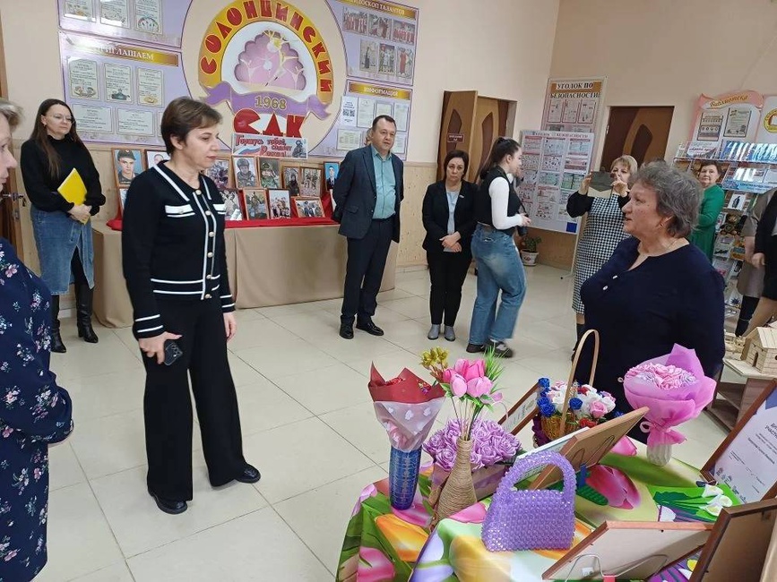 В фойе гостей встречали выставки мастеров декоративно - прикладного творчества и жителей села, выставка - достижение Солонцинской СОШ и детского сада с. Солонцы. Перед началом заседания присутствующим были представлены видео ролик о наших героях и номера художественной самодеятельности.